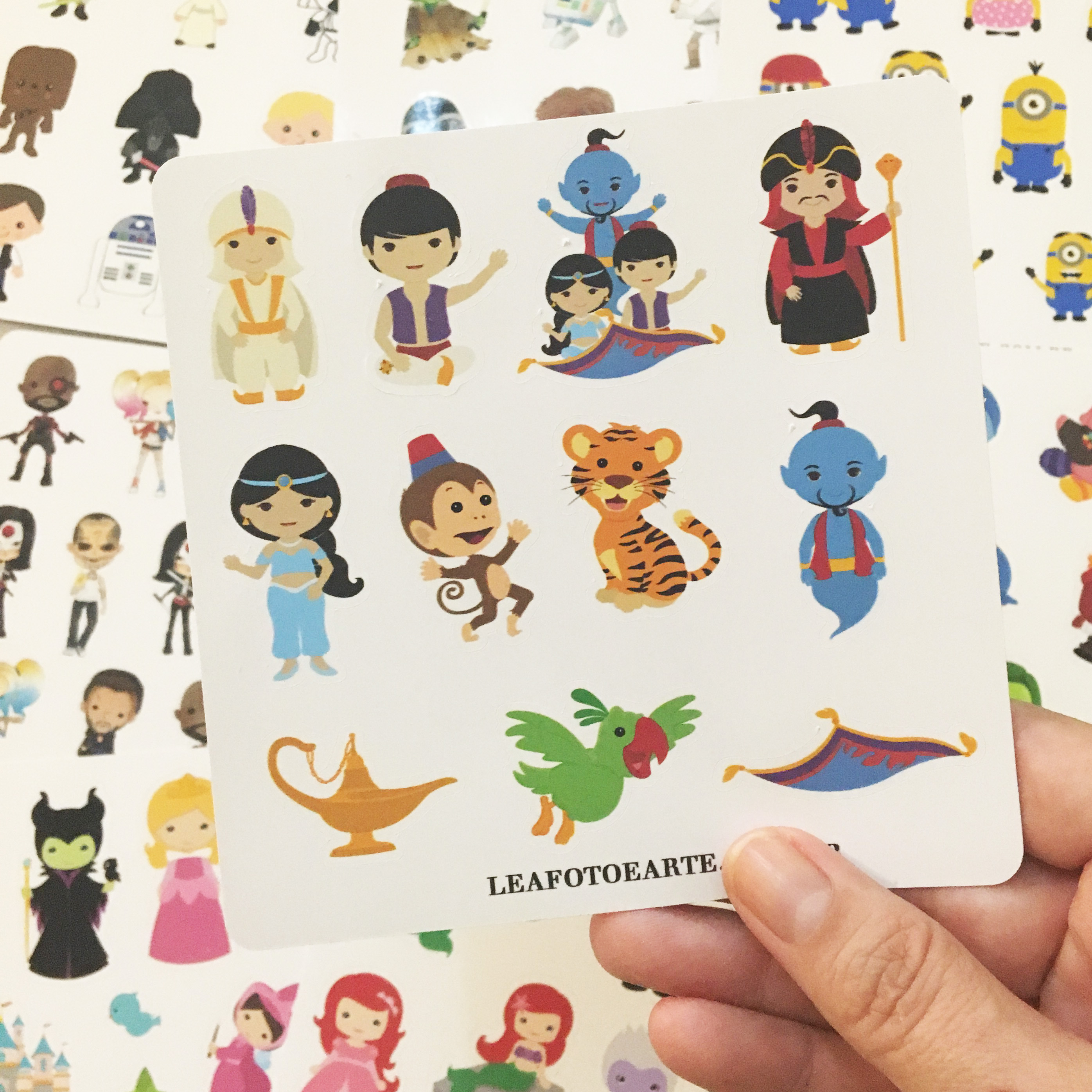 As cartelas tem 12x12cm, e os adesivos tem o recorte no formato de cada desenho. É só destacar e colar em planners, cadernos, agendas, etc.