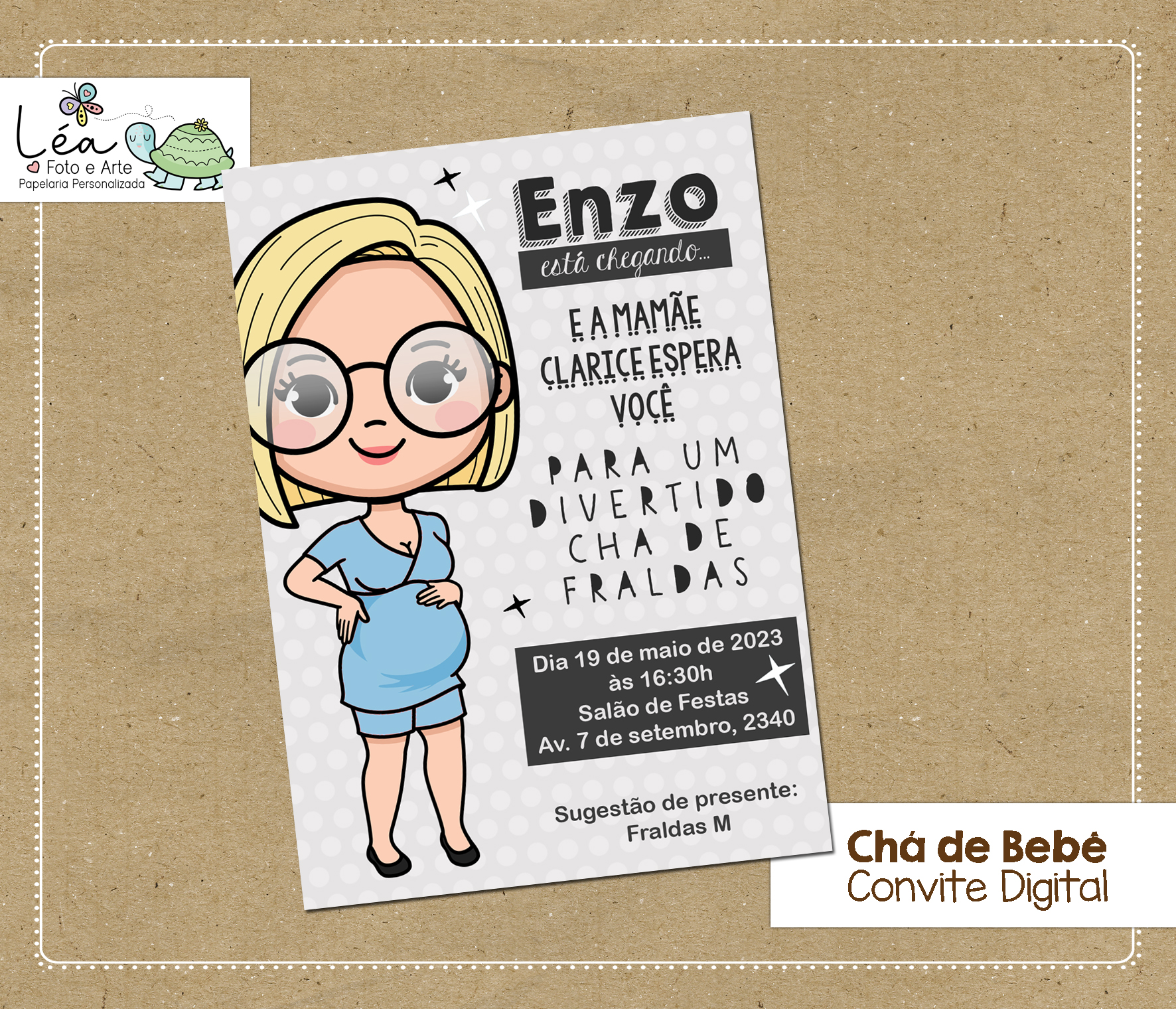 Esse convite pode ter o desenho da menina personalizado. Tenho várias opções de cores e tipo de cabelo, cores de pele, óculos, roupas.