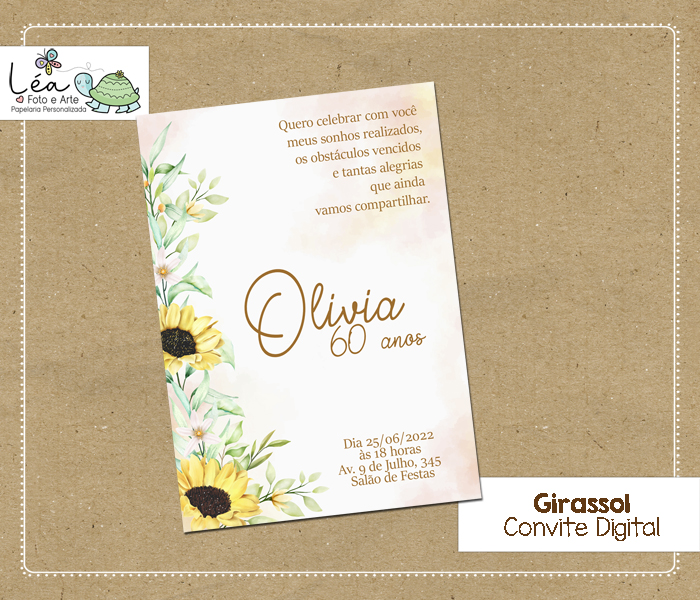 O convite pode ser digital (pra você enviar pelo whats para os seus convidados) ou pode ser impresso, com envelope e adesivo para fechar o envelope.