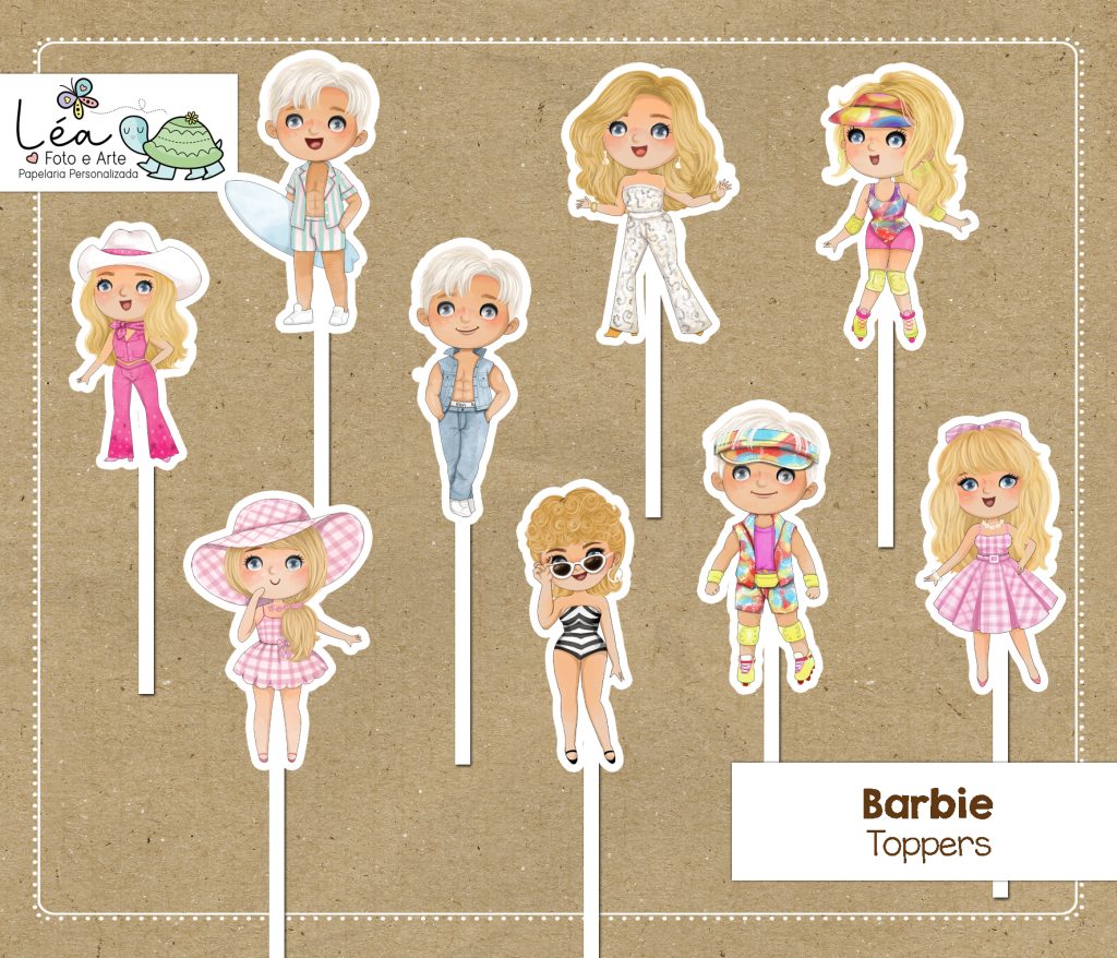 Além do topo, também dá pra fazer bandeirolas, tubetes, adesivos, forminhas… tudo combinando com esses desenhos da imagem.